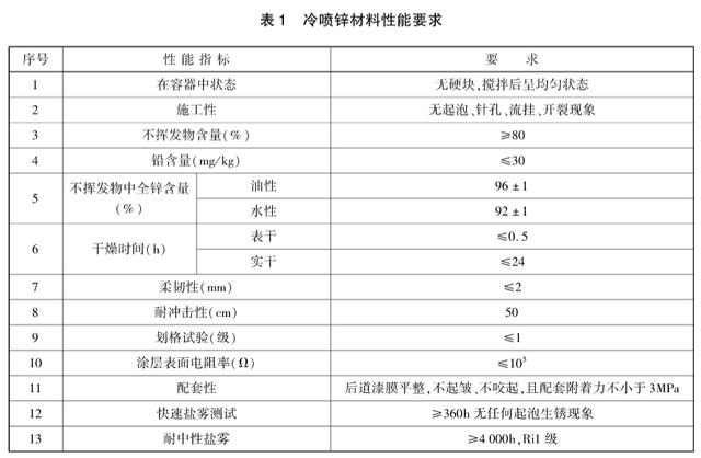 冷噴鋅材料性能要求應(yīng)復(fù)合表1的規(guī)定。