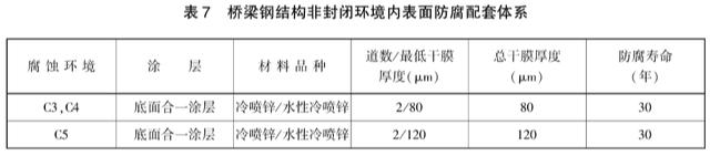 橋梁鋼結(jié)構(gòu)非封閉環(huán)境內(nèi)表面配套體系見(jiàn)表7。