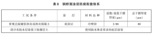 鋼橋面涂層防腐配套體系見(jiàn)表8。