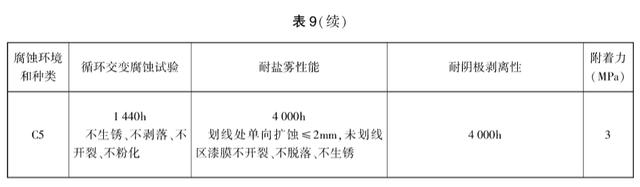7.3.2涂層體系檢測(cè)項(xiàng)目見(jiàn)表9。