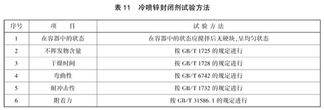 冷噴鋅封閉劑試驗(yàn)方法見(jiàn)表11。