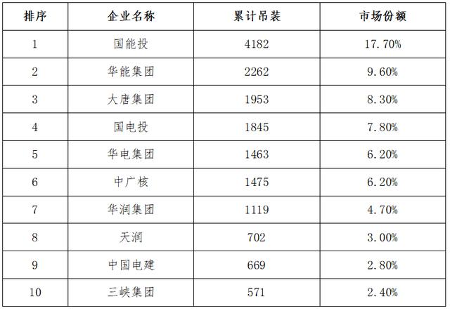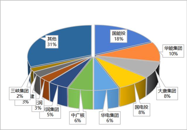 3、風電開發(fā)集中度高,前十家開發(fā)企業(yè)累計裝機量占比約69%,以大型央企為主,民企較少。