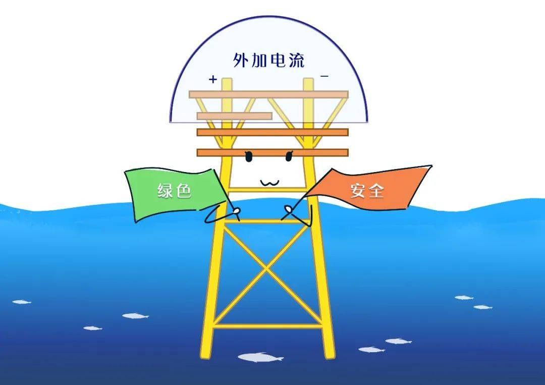 當(dāng)然,因?yàn)槔藶R區(qū)腐蝕最嚴(yán)重,因此只是涂刷重防腐涂料還是不夠的。這里還要引入“陰極保護(hù)”的概念。由于鋼結(jié)構(gòu)在浪濺區(qū)的海水浸泡率過低,不能形成有效的電流回路,因此普通的陰極保護(hù)對(duì)于浪濺區(qū)鋼結(jié)構(gòu)的防護(hù)具有一定的局限性。