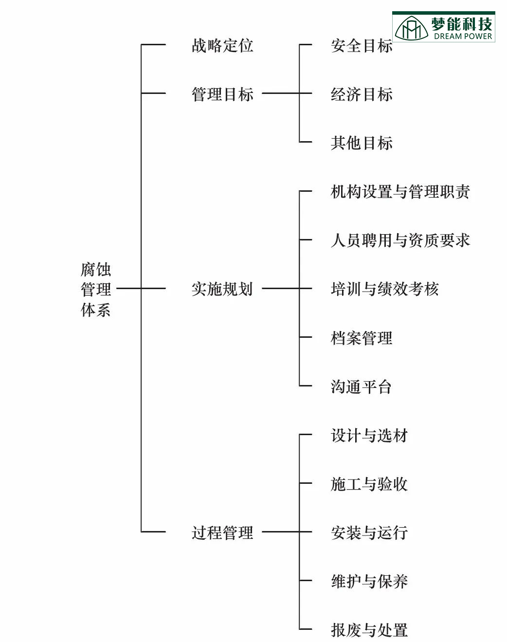 為了更好地管理腐蝕問題,應(yīng)建立一套完善的、具有廣泛適用性的系統(tǒng)的管理體系,通過組織的目標(biāo)、制度、程序等來管理腐蝕問題,指導(dǎo)組織的腐蝕管理工作。腐蝕管理體系內(nèi)涵豐富,要在實踐的過程中不斷發(fā)展完善[1,4,5]。