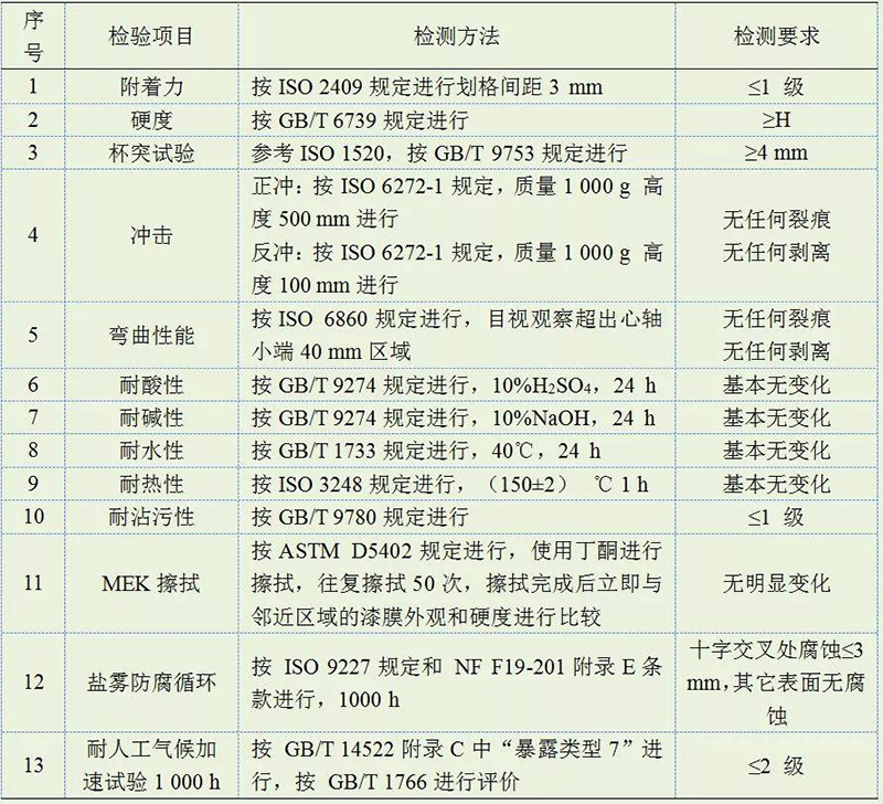 表1 城軌車輛用水性漆性能要求及檢驗方法