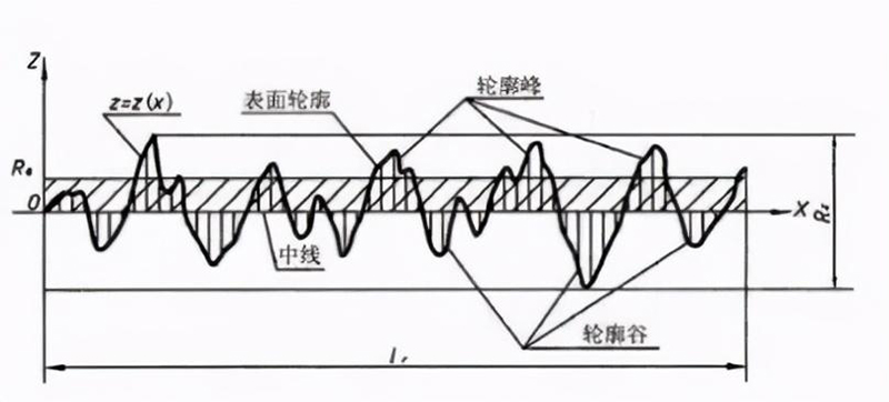 表面粗糙度常用的是Ra、Rz和Ry,Ra為輪廓算術(shù)平均偏差,Rz為微觀(guān)不平度十點(diǎn)高度,Ry為輪廓最大高度。