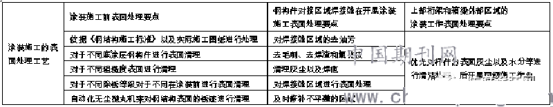 表1涂裝施工的表面處理工藝主要內(nèi)容