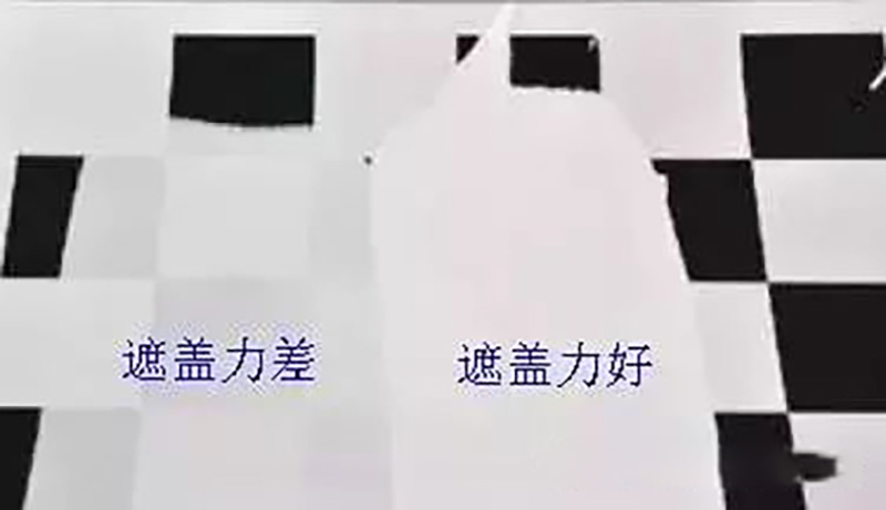 涂料遮蓋力是指把有色不透明的色漆均勻涂布在物體表面,使其底色不再呈現(xiàn)的最小用漆量,體現(xiàn)遮蓋被涂物表面顏色的能力。用kg/m2表示。