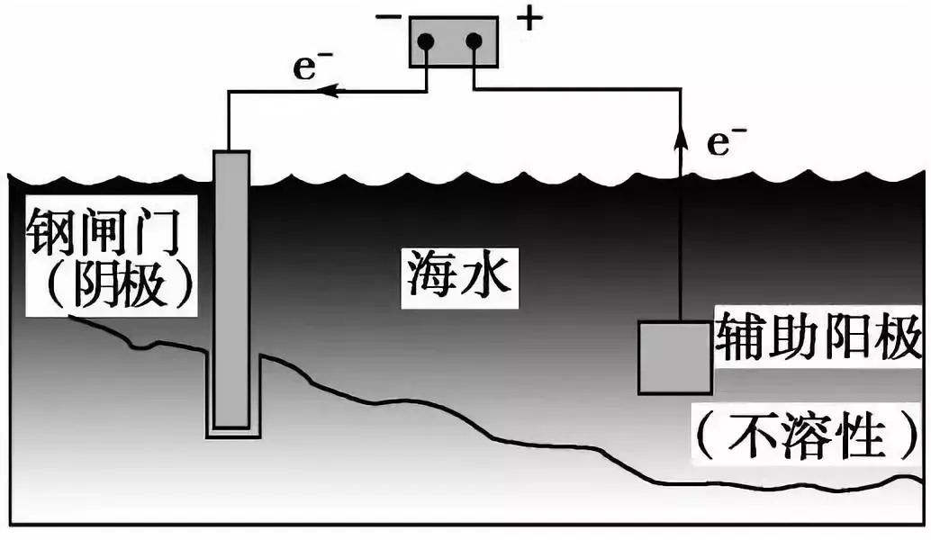電化保護(hù)法的作用機(jī)理是利用電解池原理使轉(zhuǎn)化保護(hù)金屬的電位,"鈍化”金屬或者抑制腐蝕。有以下幾種方法:保護(hù)器保護(hù)法常用于蒸汽鍋爐的內(nèi)壁及海上航行的船舶。將鋅板與船底部金屬直接相連,在海水的作用下鋅板作為保護(hù)器被逐漸溶解,而船底金屬作為陰極而免遭腐蝕。