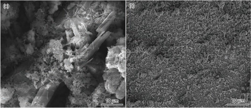 圖4 鋼試樣在含有鐵氧化菌及空白腐蝕體系中浸泡20d后的生物膜形貌圖[3]