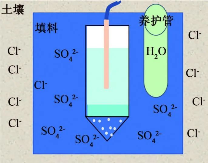 圖2 鹽漬土環(huán)境中長效參比電極失效機制