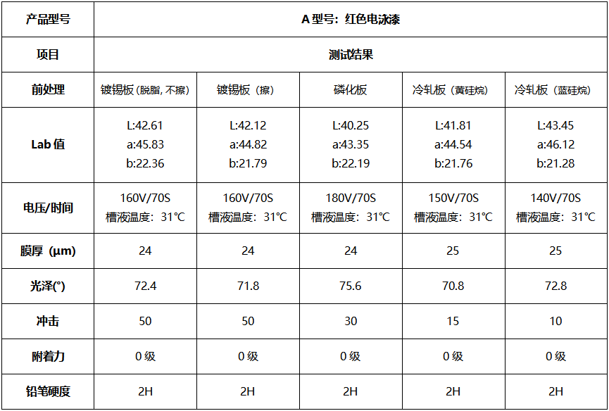 備注:以上前處理類型選用市場上最常見、使用頻率較高的型號。(A型號磷化、B型號硅烷)