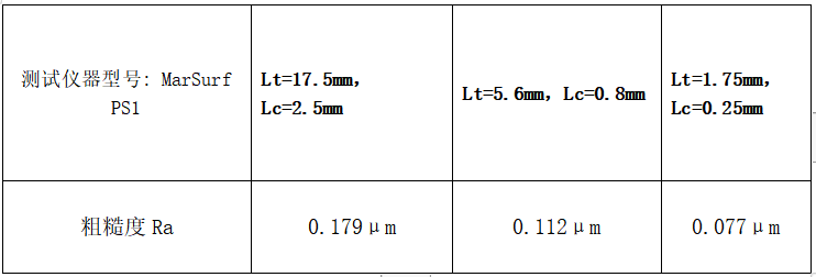 Lc代表:截止波長或行程,Lt代表:測量長度,Lt與選擇的Lc有一一對應(yīng)關(guān)系(Lt=Lc*n,n是探針測量次數(shù),該儀器n=7)。一般有Lc:0.25mm、0.8mm、2.5mm三個檔位進行選擇;對應(yīng)的 Lt即為:1.75mm,5.6mm,17.5mm。在不同的Lc下會測試得到不同的粗糙度Ra測試結(jié)果,一般來說Lc越大,測試Ra值越高。所以在表示Ra測試結(jié)果時,通常需要標(biāo)注清楚所選用的Lc。