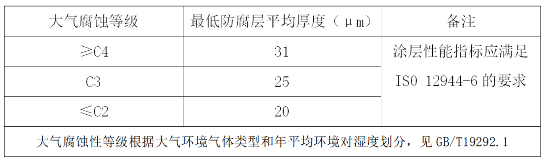 表1:熱鍍浸鋅防腐工藝防腐層厚度要求