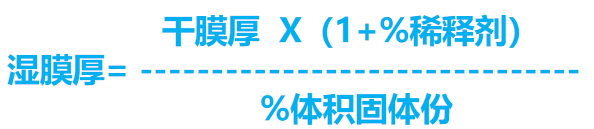 例:固體含量為50%的油漆,稀釋20%后,要施工厚度為100um的干膜。為確保 達到所指定的干膜厚度,油漆所施工的濕膜厚度應(yīng)為多少呢?